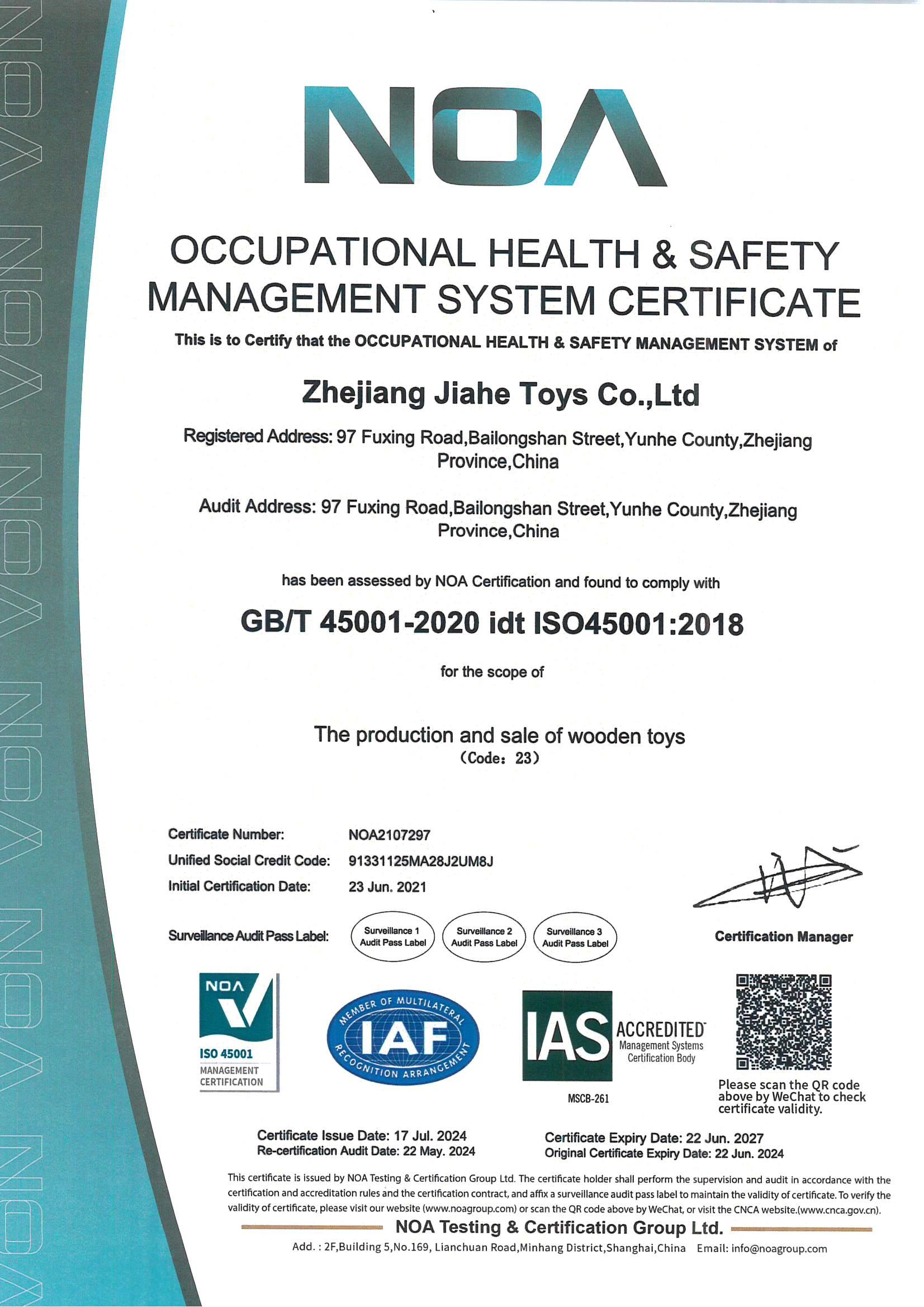 Qualification certificate